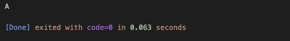 결과인 'A'가 터미널에 출력된다.