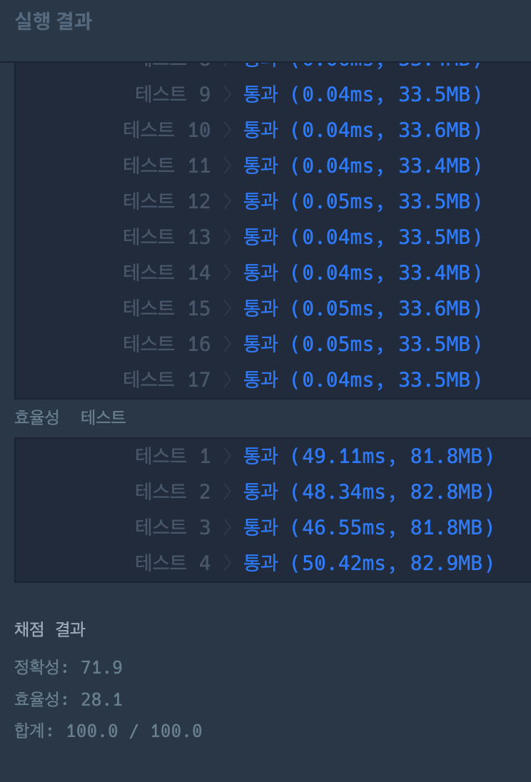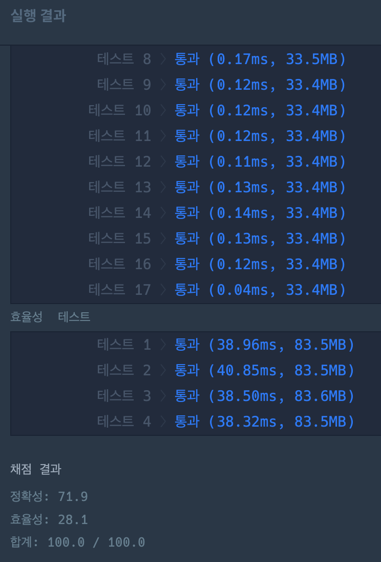 나의 코드에 비해 코드가 훨씬 간결하고 시간도 단축된다.