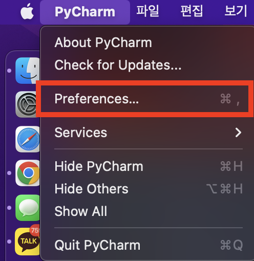 2. 프로젝트에 Python 인터프리터를 누른다.