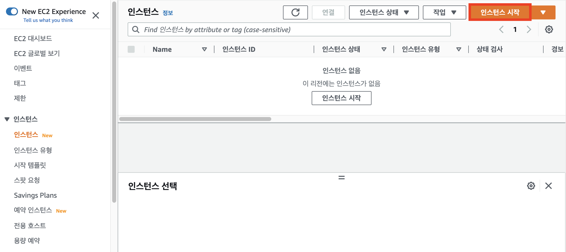1. 로그인 후 왼쪽에 인스턴스 클릭!