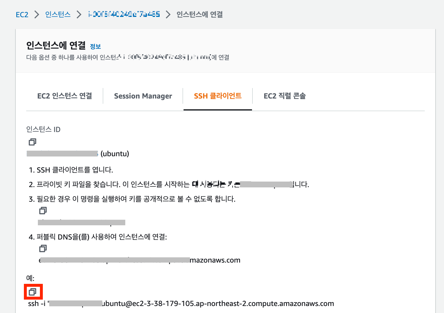 그리고 SSH 클라이언트에서 제일 아래쪽 ssh 문구를 복사한다.