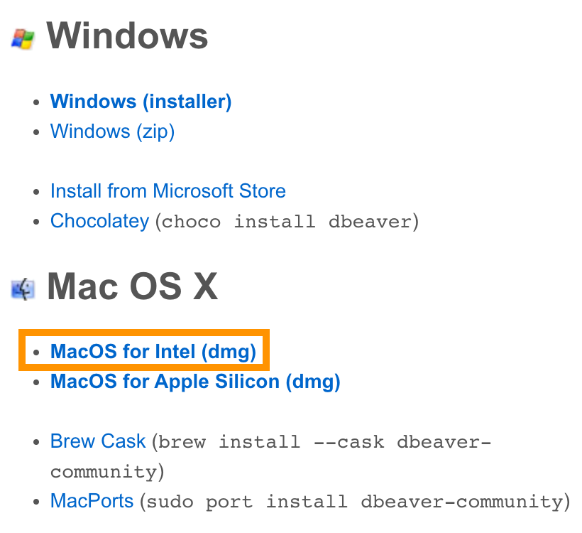 Download Tested and verified for MS Windows, Linux and Mac OS X. Install: Windows installer – run installer executable. It will automatically upgrade version (if needed). MacOS DMG – just run it and drag-n-drop DBeaver into Applications. Debian package
