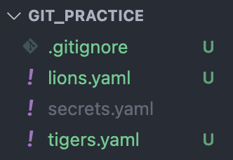 git status를 해보면 secrets.yaml이 사라지고 .gitignore이 생겼다. git이 더 이상 secrets.yaml은 신경 쓰지 않는다.