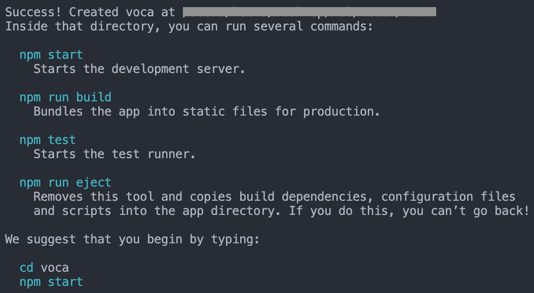 2. 리액트 파일 다운로드가 완료가 되면 아래와 같이 뜬다.