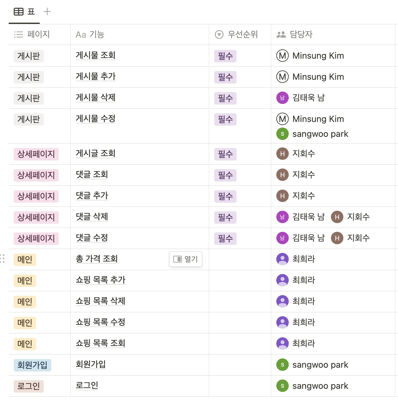 필수 기능을 먼저 구현하고 다른 기능들을 차례대로 구현해 나갈 계획입니다.