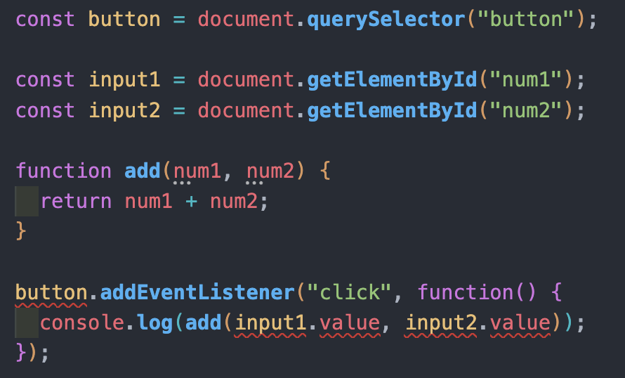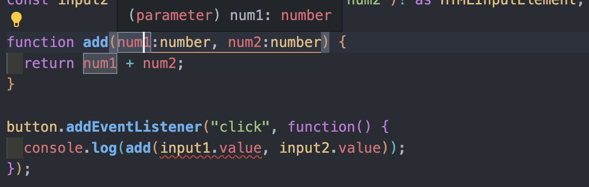 num1과 num2의 타입은 number로 지정을 해주면 input.value에 빨간줄이 생긴다.