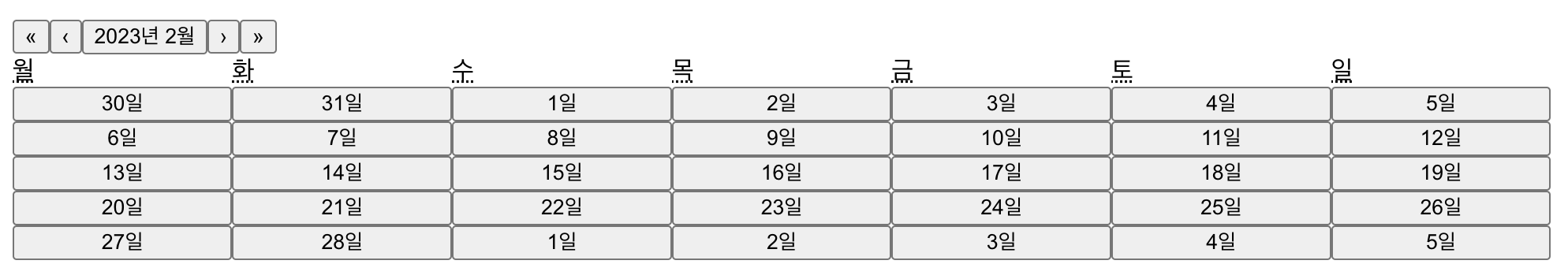 저번에는 직접 달력을 구현해 보았으니 이번에는 리액트에서 제공하는 달력을 사용해서 구현해 보았다.