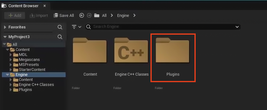 엔진 폴더 안의 플러그인 폴더에서 Water System 기능을 사용하려 하는데 폴더가 없다.