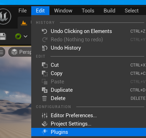 프로젝트를 열고, 메인메뉴에서 편집(Edit) > 플러그인(Plugin)을 선택한다.