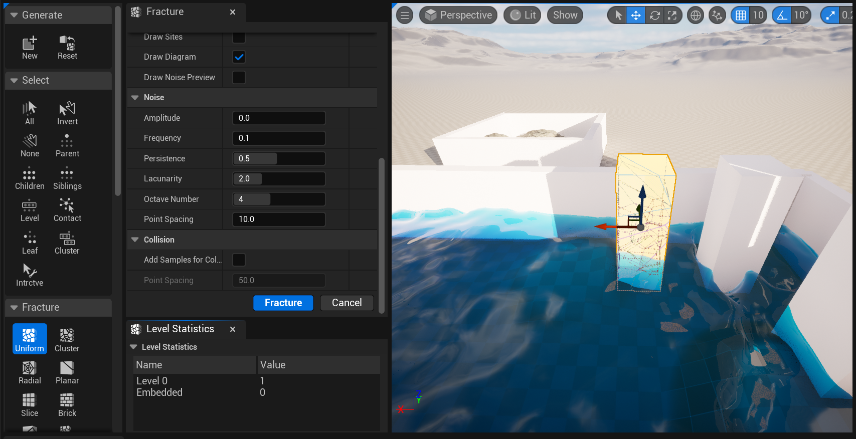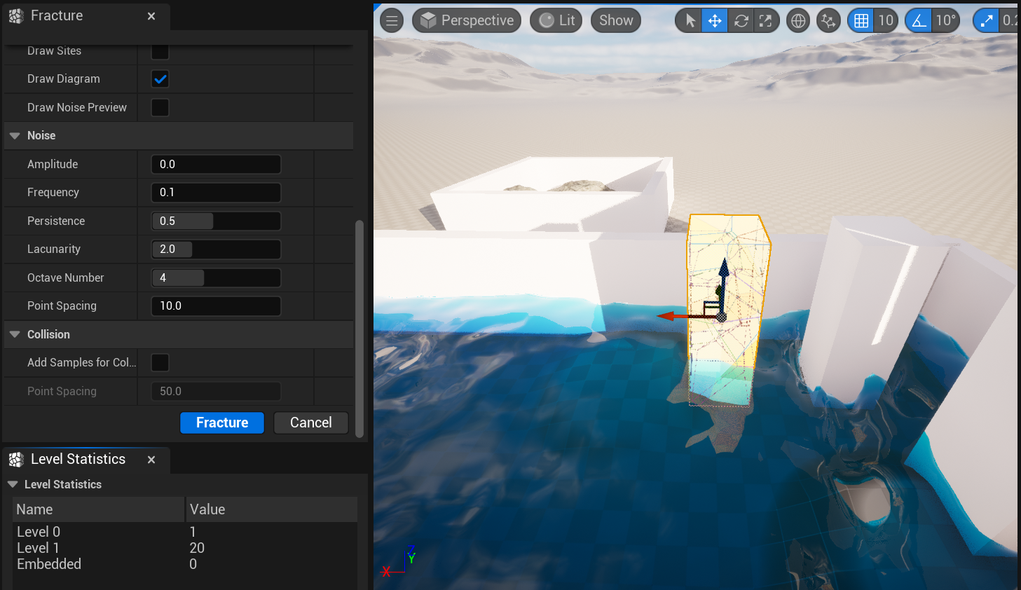 이때 Fracture을 클릭하면 레벨(Level)이 생성되며 몇개의 조각으로 나눠지는지 표시된다.