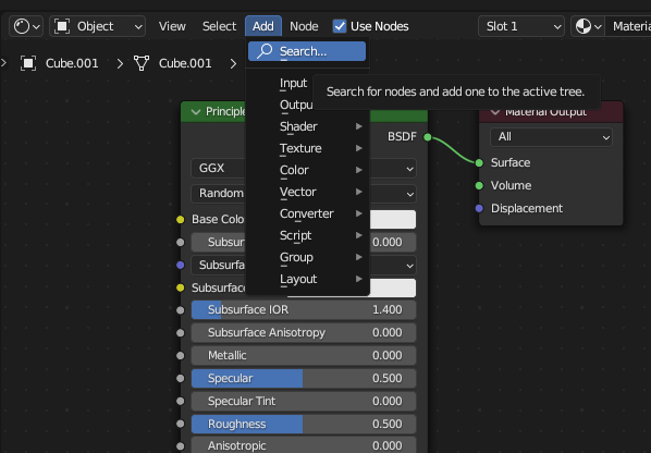 2. 'Add'를 클릭 후 검색창에서 'Noise Texture'을 선택해 준다.