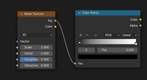 3. Noise Texture의 Fac과 Color Ramp의 Fac을 연결시켜 준다.