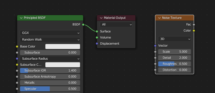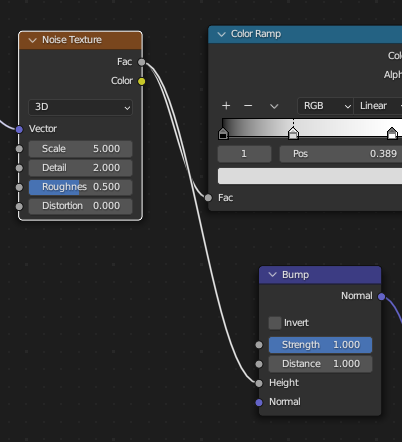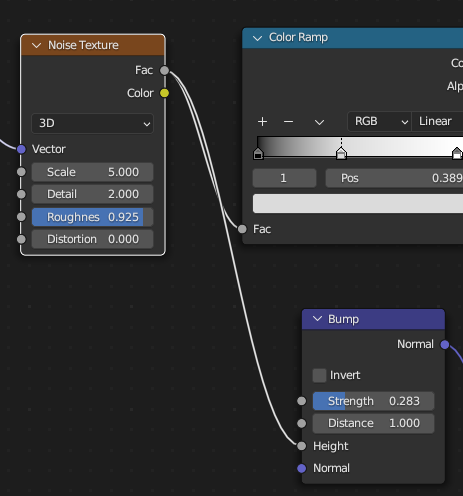 Noise Texture의 Fac와 Bump의 Height를 연결시켜 준다.