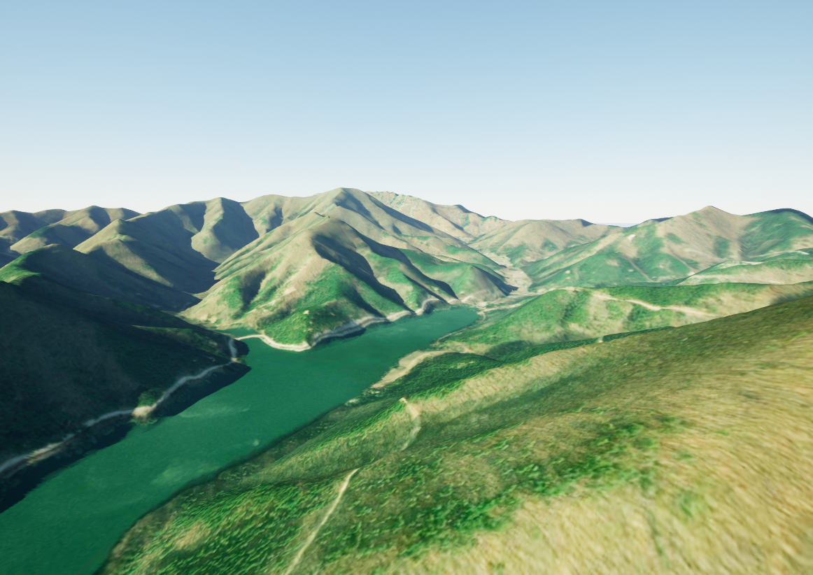현제 언리얼엔진에서 Cesium을 사용하여 한국지형의 일부분을 3D로 구현한 상태이다.