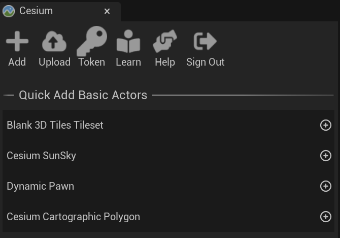 1. 왼쪽의 Cesium창에서 Quick Add Basic Actors 아래에 Cesium Sunsky를 선택한다.