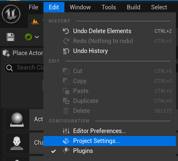 3. 상단 메뉴에서 Edit->Project Settings를 클릭한다.