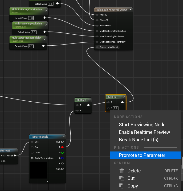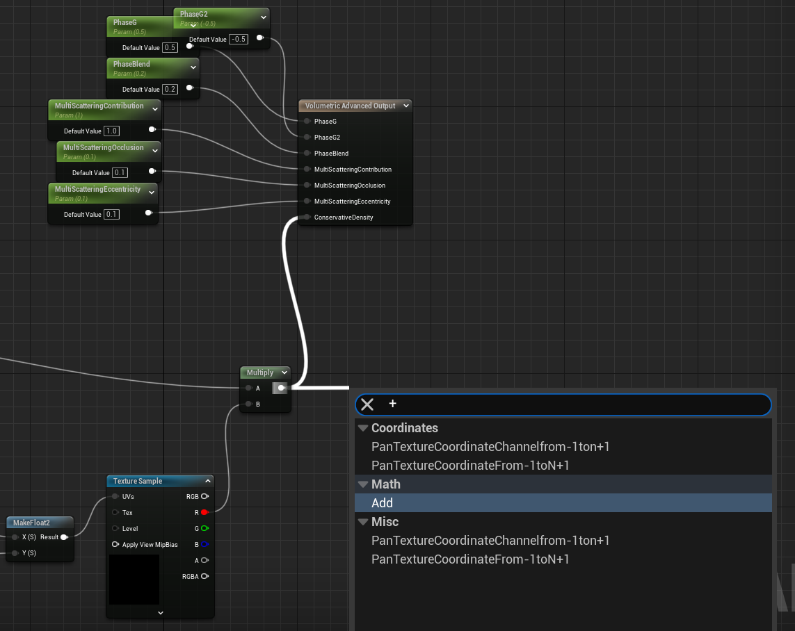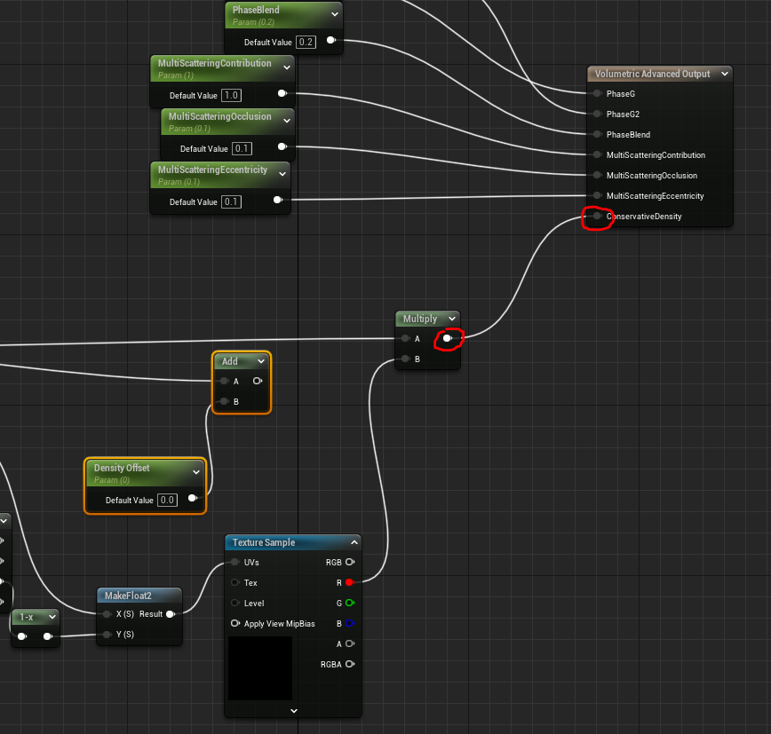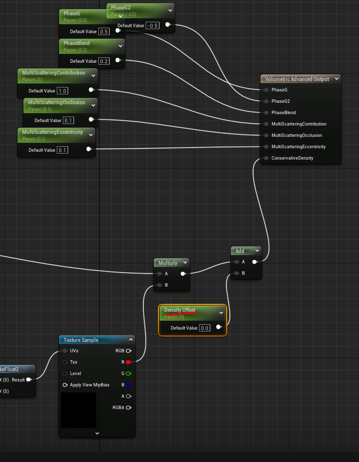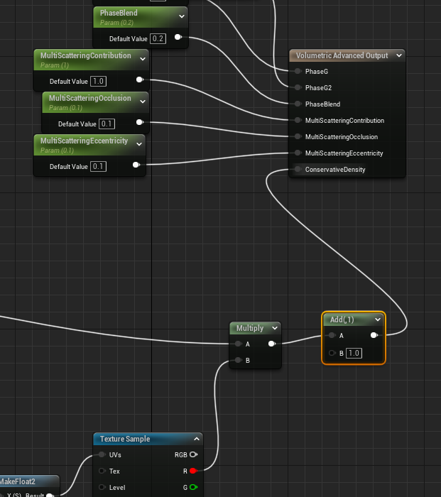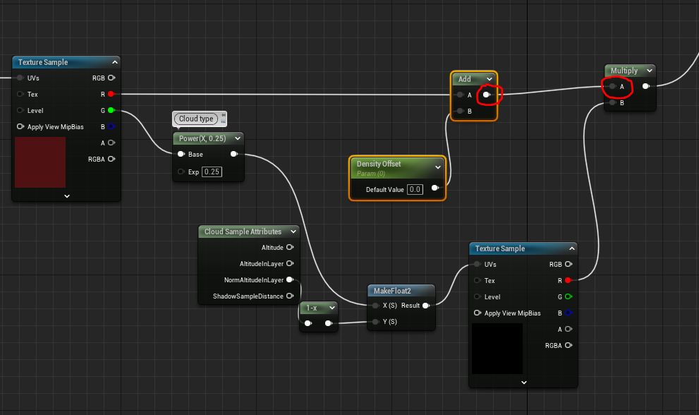 10.m_SimpleVolumetricCloud에서 TextureSample의 R과 Add를 연결시켜 준다.