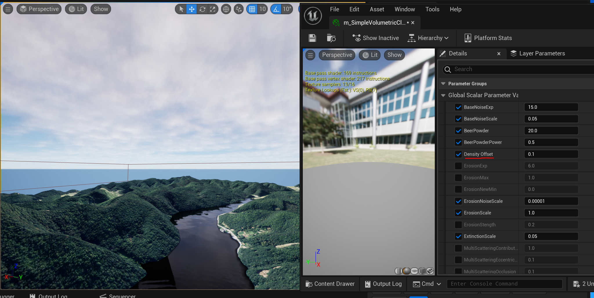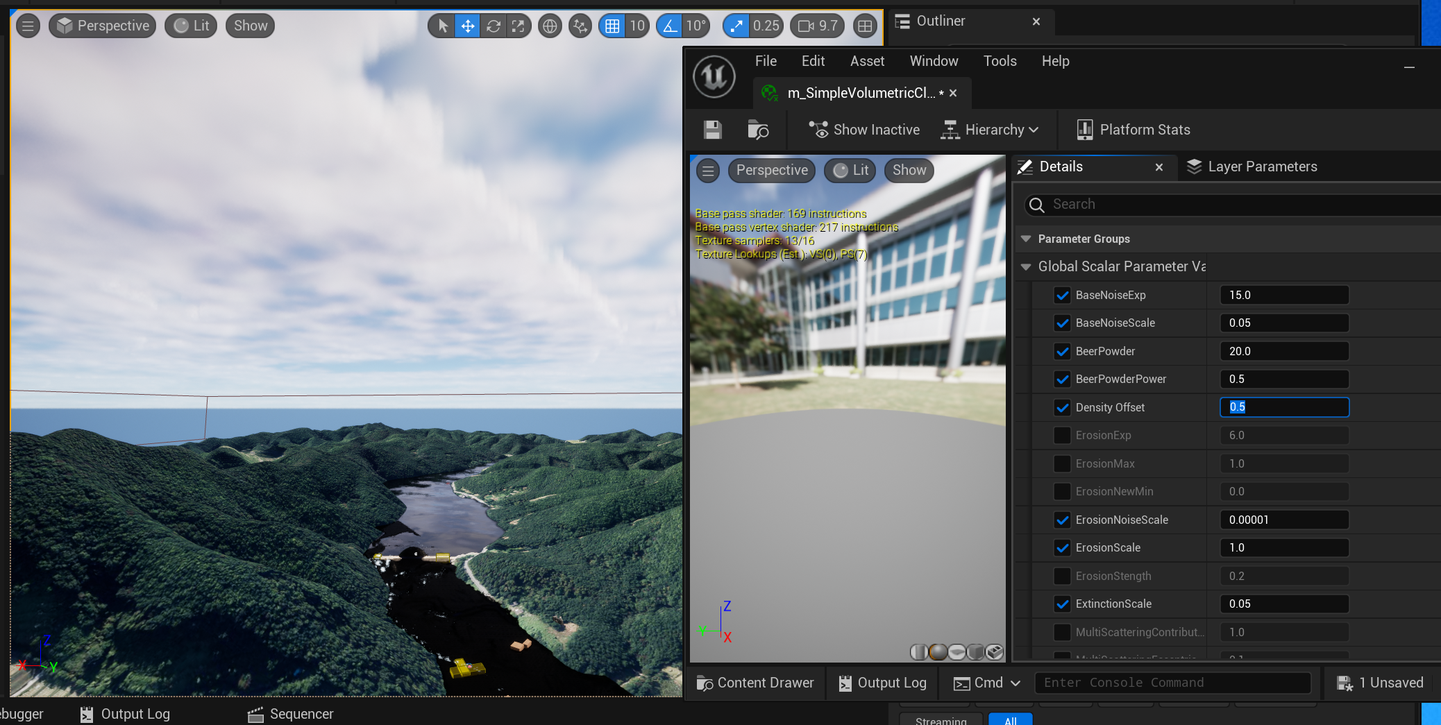 12. 다시 m_SimpleVolumetricCloud_Inst의 Details/Global Scalar Parameter Values/Density Offset에서
