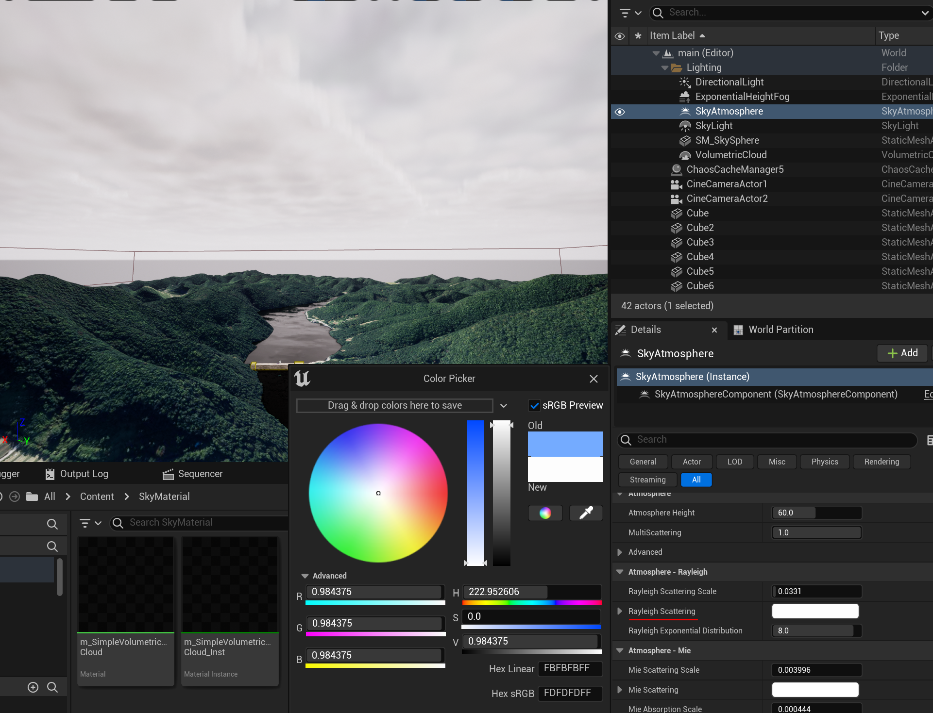 13. SkyAtmosphere에서 Details/Atmosphere-Rayleigh/Rayleigh Scattering의 색깔을 바꿔준다.