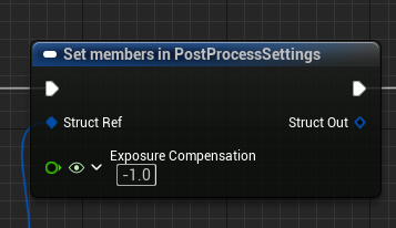 13. Set members in PostProcessSettings를 선택 후 Details/LensIExposure/Exposure Compensation을 켜준다.