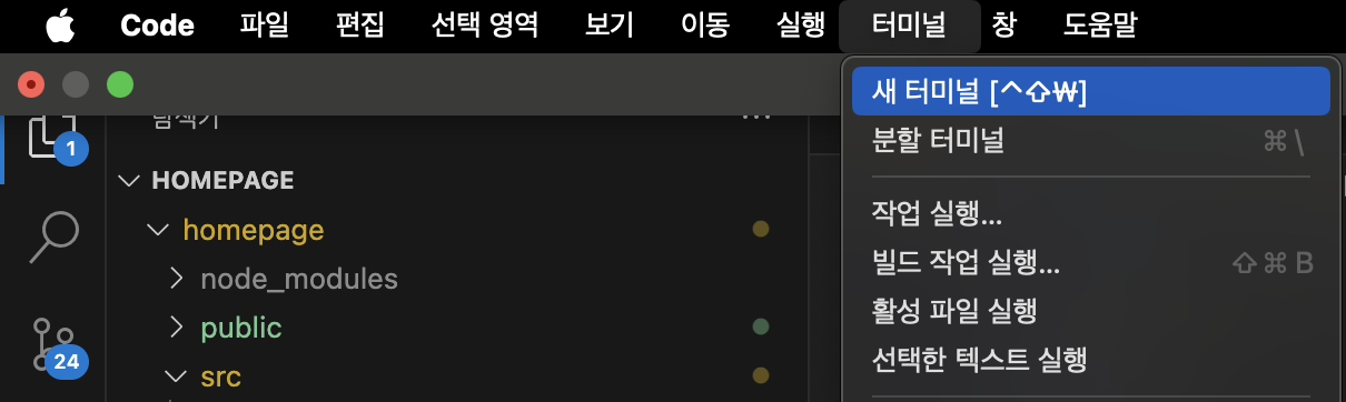 1. VScode에서 터미널을 실행시킨다.