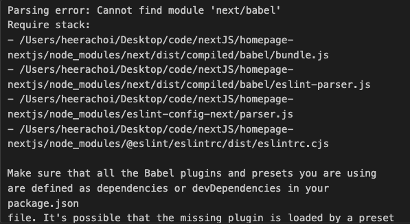Next.js 개발을 위해 파일 설치 후 아래와 같은 에러가 뜬다