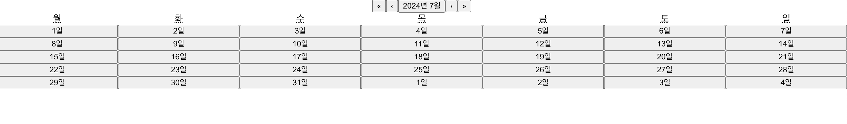 아래와 같이 화면에 달력이 생성되었다. 이제 내가 원하는 구조로 변경을 해보았다.