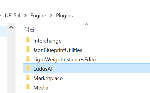 3. 다운로드한 플러그인 파일을 원하는 언리얼엔진 버전 파일 > Engine > Plugins에 넣기