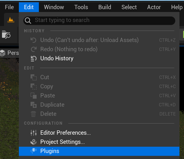 4. 언리얼엔진 실행 후 Edit > Plugins로 이동