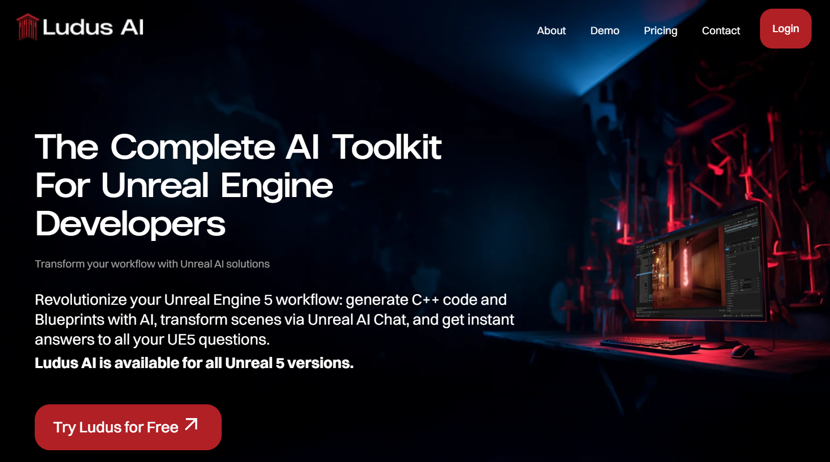 Professional AI tools for Unreal Engine 5: C++ assistance, Blueprints copilot, scene generation, and AI Unreal expert. Try Ludus Unreal AI plugin today!